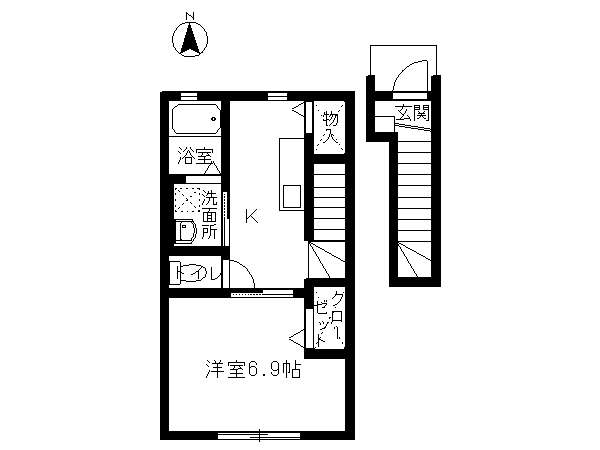 | 詳細間取 | 1K (洋6.9帖×1) | ||